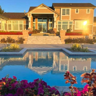 Installation 6-8 Weeks | Imagine Pools Bliss 35' in Storm Grey with Auto-Cover, Techo-Bloc Blu Grande Pavers with Onyx Black Border, Marble Pool Coping, Two Bubblers, Aluminum Pool Fencing with Two Gates, 11' x 15' Putting Green, Landscaping with Lighting, Small Graphix Retaining Wall, 14' x 25' Toja Grid Pergola, Cover Your Pergola Apollo Roof Structure, Stairs with Techo-Bloc Landing